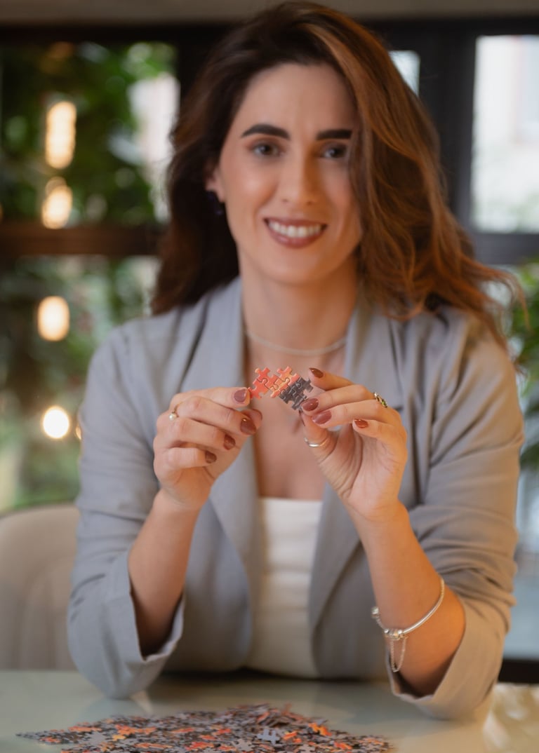 O processo terapêutico não é sobre "encaixar tudo rápido", mas sobre olhar com paciência e presença para cada peça: um relacionamento que pesa, um momento de exaustão no trabalho, uma lembrança da infância que ainda pulsa, uma sensação no corpo que pede atenção. Aos poucos, vamos descobrindo como essas partes se conectam e revelam quem você é hoje – com suas forças, suas dores e suas possibilidades reais.